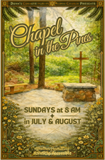 Join us Sundays at 8:00 AM in July and August for inspiring summertime services surrounded by birdsong, morning light, and the quiet beauty of God’s creation. Handcrafted wooden benches and a rustic, stone altar create an intimate and reflective atmosphere, perfect for beginning your Sunday in stillness and gratitude.